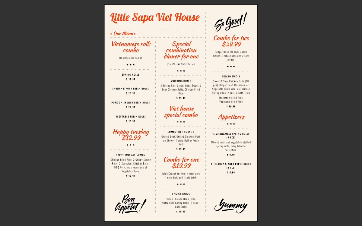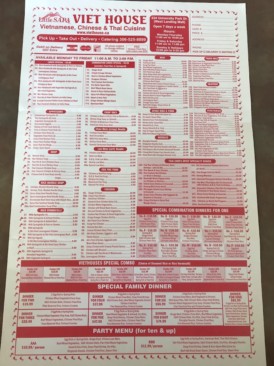 Welcome to Little Sapa Viet House, a delightful gem for Vietnamese cuisine located at 534 University Park Dr, Regina, SK. This takeout-only restaurant takes pride in delivering authentic flavors that transport you straight to the bustling streets of Vietnam.
